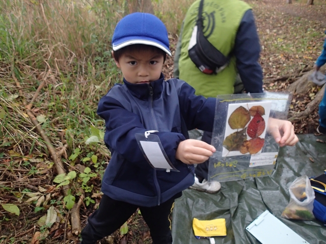 葉っぱの標本づくりでは、お気に入りの葉を熱心に探し、自分だけの素敵な標本を完成させていました。