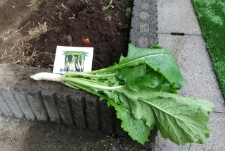 学校の校庭のプランターでは、地域の江戸伝統野菜「品川カブ」の栽培をスタートしました。昨年のタネが落ちてすでに育ちはじめているものもありました。メンバーにも自宅でチャレンジできるように、タネをプレゼントしました。