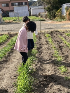最初のころは戸惑いもありましたが、ハイ麦踏みをお願いすると、上手に麦踏みを行っていました。麦踏みは今回が最後となります。2月に入り麦踏みを行うと、麦踏み後に、寒さが増すと苗が凍って枯れてしまうので、今回と終わりと伝えると悲しそうな顔をしていました。