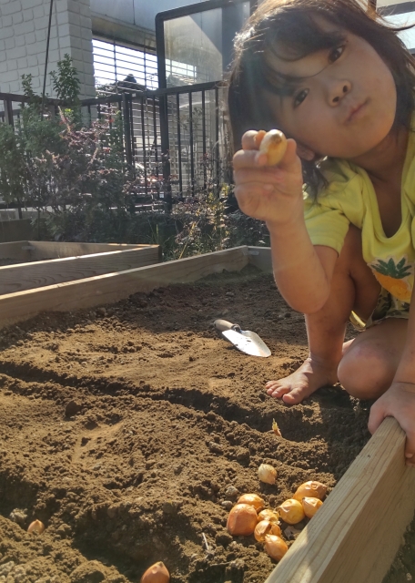 そして、野菜の種を植えました。たまねぎと大根と人参を植えました。