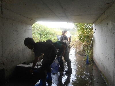 かなり浅くて魚が採れるのは一部だけといった感じでした。しかし、その一部の深みにすさまじい数のメダカとヌマエビがいて、かなり驚きました。ただ、明石川と繋がっているので、ナマズなどの肉食魚が迷い込んだら、それらの生き物は簡単に絶滅してしまうなと思いました。