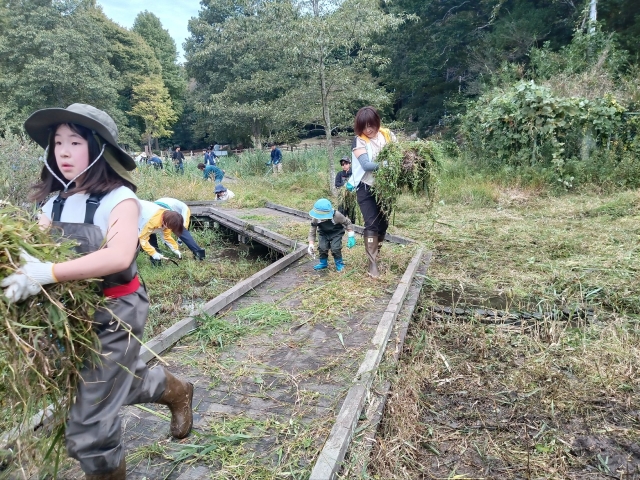 水戸市千波湖周辺のホタルを守っていく活動として秋の逆川緑地小樽 再生整備活動を行いました。