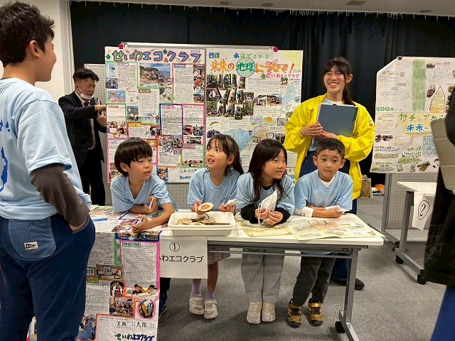 掲示は 小学生高学年 中学生が作成した「水はどこから 未来の地球につなぐ」です。