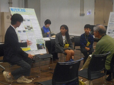 いい川づくりに小学生の時から参加している高校生サポーターのNRくんから「テーブル選考ではいつも落ちて、2日目の復活選考でがんばることになる」と聞いていたので、テーブル選考で落ちずに上がれてよかったです。明日の次の選考では、また発表があるので、今日の発表よりもわかりやすくうまく発表できるように帰って練習をがんばります。