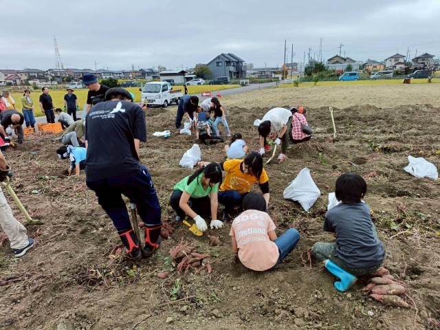 自分たちで植えた芋を 一般の参加者のこどもたちが喜んで掘っていた