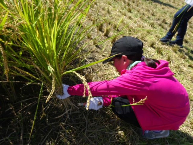 田植えが出来ずに残念がっていましたが、稲を守る『かかし』を工夫して楽しそうに製作していました。稲刈りも慣れてくるとスピードもアップし、「楽しい!」と声に出るほど、夢中で取り組んでいました。