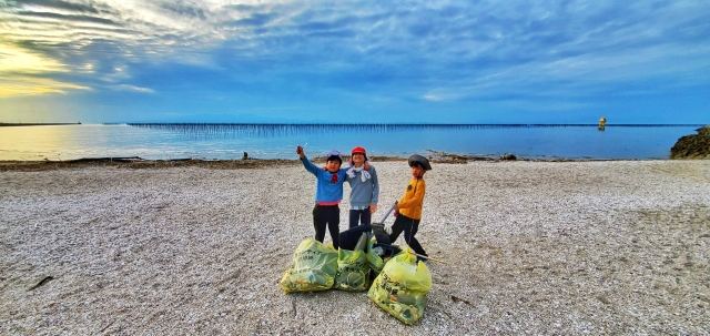 1時間と時間を決めて海岸のごみ拾いを行いましたが、予想以上の4袋のごみを回収できました。