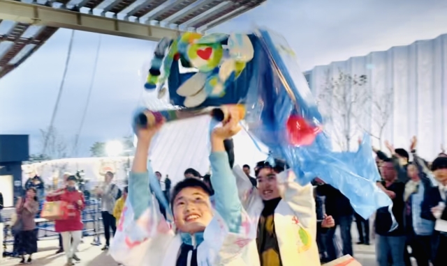 令和7年3月16日、2025年日本国際博覧会テーマ事業「いのちを高める」プロデユーサー中島さち子さん主催のごみアートコンテストで『最優秀賞受賞』に選んでいただきました。ぼくたちと一緒に「空ゴミ」「陸ゴミ」「海ゴミ」を拾う『クリーンフィッシュ』という名前の未来の生き物をイメージしてつくりました。5月3日『ごみの日』に大阪・関西万博内ギャラリーWESTにて、作品展示とステージでの作品紹介、環境啓発を行ないました。ステージでは、世界中の人たちにぼくたちの思いを届けたかったので、大切なメッセージは日本語と英語で発表しました。