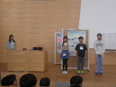 少し間違えたけど午後の「明石川と共に生きる~川は私たちで川り(変わり)、私たちも川で川る(変わる)~」の発表は、3人でわかりやすくできたと思います。発表の後のたくさんの質問にも、きちんと答えられてよかったです。自分たちで意見を出す交流会でも手をあげて意見を言えていたし、外来種問題では玉一アクアリウムの中でも意見が分かれて激論になりました。初めて発表に参加して、私たちの意見も採用されてうれしかったし、玉一アクアリウムを担当してくれたスタッフの大学生のお姉さんもとてもやさしくてうれしかったです。