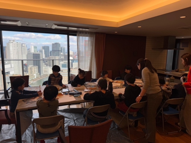 SDGsに関する絵画指導を、元府立高校美術講師の先生のご指導のもと、小学生8名とともに行いました。