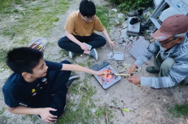 ニコニコしながら、ぼくたちにどんどんたけのこを焼いて食べさせてくれた。奄美大島のたけのこは、細長くて柔らかくてやさしい味がした。奄美大島と大阪の違いをまた1つみつけたよ。
