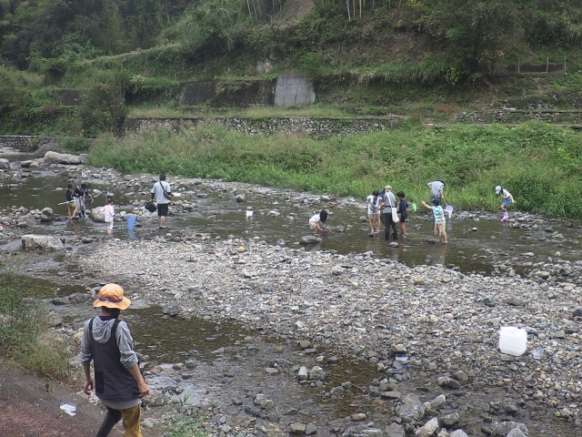 親子で楽しく生き物を探していました。冷たい川の水が気持ち良い良く晴れた日で、笑顔の絶えない調査となりました。