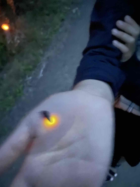 とてもたくさんのホタルが飛び交いこどもクラブの子供の手のひらにホタルが止まり子供たちが喜んだ。