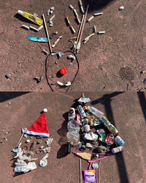 まちづくり市民グループしもつま3高主催の清掃活動に、4歳の娘と参加しました。クリスマスの時期なので、参加者はサンタの帽子や衣装を身につけ、早朝から約2.4kmのコースを歩きながらごみ拾いを行いました。タバコの吸い殻をはじめ、茂みに隠されていた空きビン・空き缶・ペットボトル、アイスやお菓子の包装、さらにはぬいぐるみなど、多様なゴミを回収しました。