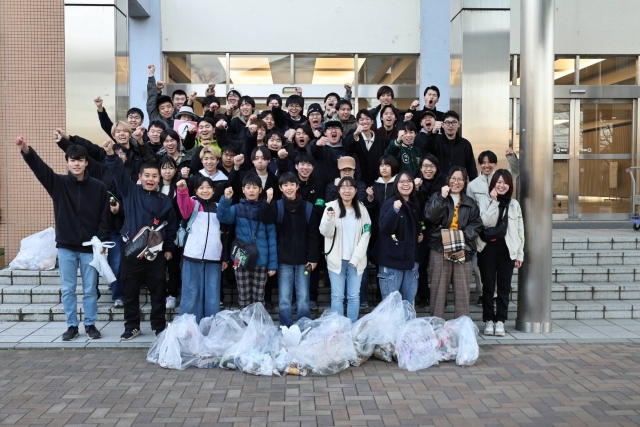 最高気温が9℃という寒い日でしたが、学生の皆さん、宮代町役場の皆さんの中に混じり、約50名が4グループに分かれて指定されたルートのごみ拾いをして、日工大のキャンパスでゴールとなりました。