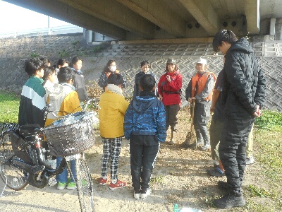 今日は滋賀県の団体の豊穣の郷さんが来られるので、玉一アクアリウムの小中学生メンバー9名と高大学生サポーター2名が参加して一緒に明石川下流で調査をしました。調査後には、図鑑作りについて豊穣の郷さんから聞かれたので、メンバーとサポーター1人1人が自分の考えや思いを話しました。