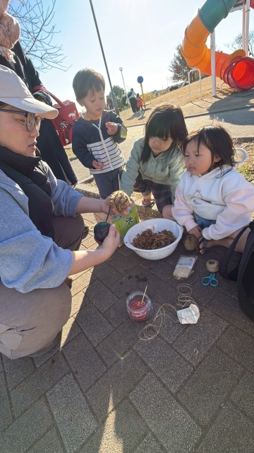 公園の花壇にお花を植えました。球根ボールを作りました。