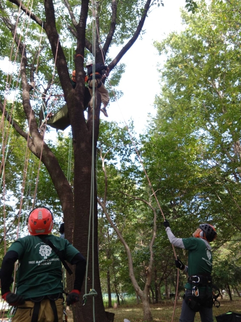ツリーイングは、自分の力でロープを踏んで、自分の体を持ち上げていくので、初めてのメンバーは、講師に習ったことを守りながら確実に一歩一歩上を目指していました。でも割とすぐにコツをつかんで、気がつくととても高いところまで登っていました。去年に達成できなかった自分の目標を果たして、大満足の表情を見せているメンバーもいました。下から眺めているこちらまで嬉しくて幸せな気持ちになります。