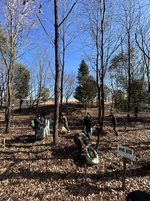 サンデンフォレストのサポーター達とキンラン生息地の落ち葉掻きをしました。