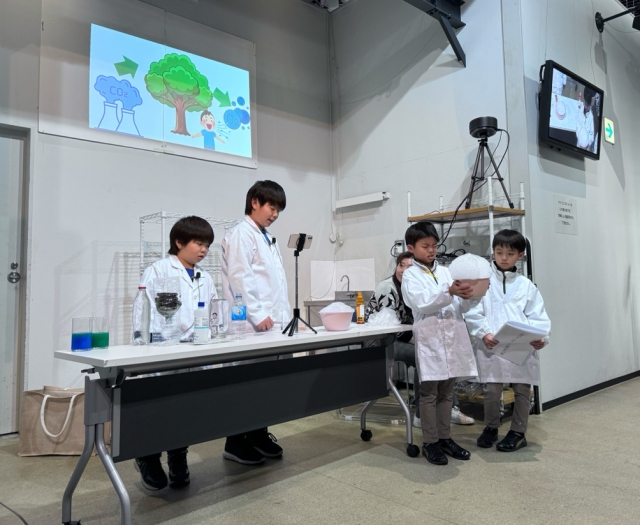 今回の実験ショーを通して、難しく感じられがちな環境問題も、実験という体験を通すことで、多くの人に伝えられることを実感しました。水の流れや見えない二酸化炭素、身近な洗濯糊やラメに含まれるプラスチックなど、日常と環境が深くつながっていることに、来場者が驚きながら気付いてくれる姿が印象的でした。また、上流と下流、里山と都会は分断されているのではなく、一本の川の流れでつながっていることを伝えられたことは大きな成果だと思います。この実験ショーが、参加した一人ひとりにとって、地球や環境について考える小さなきっかけになれば嬉しいです。