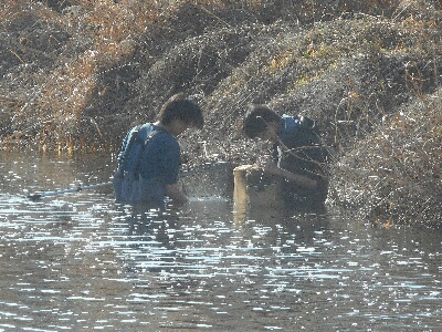 ブルーギルはナーセリーの畑の肥料に持ち帰りました。小学生メンバーも高校生サポーターもそれぞれ黙々と調査に取り組んでいました。暖かくて調査日和でした。