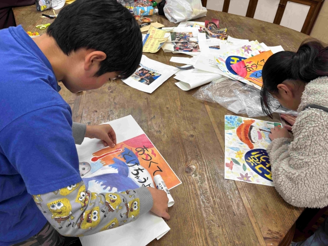 こどもエコクラブ全国事務局に提出する壁新聞の制作と、エコポスターの入賞作品に氏名を貼る作業と、非常食のアルファ米の調理をしました。