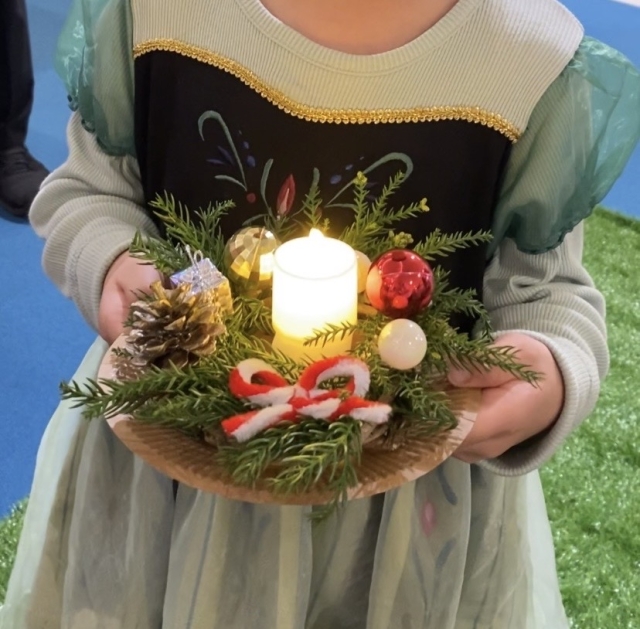 1か月前からマツボックリや木の実を拾い集めて、それを1つずつペイントした。それから草刈りで出た蔓をもらう事ができたので、それを巻いて小さなリースを80個作った。それから前日の夜に杉の葉を小さくカットして、それを1組分ずつ袋詰めした。クリスマスリースをサッと短時間で作れるように工夫して準備したが、それでも当日は足りない材料があったりして大変だった。