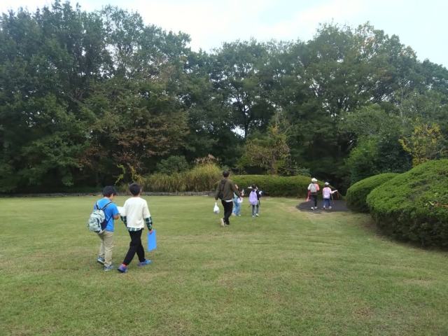 いつもと違う場所に電車に乗って来たこと。三芳町とは違う広大な自然にみんなテンション上がりました。三芳町の林では高い木の上にいて、なかなか姿を観るのが難しい野鳥ですが、近くで小さいキツツキのコナラがドラミングを見せてくれました。おたからリストにあったので「とりー!とりー!」と大騒ぎでした。また動物親子カード合わせは、三芳町には無い広々とした芝生広場で走り回れて嬉しそうでした。