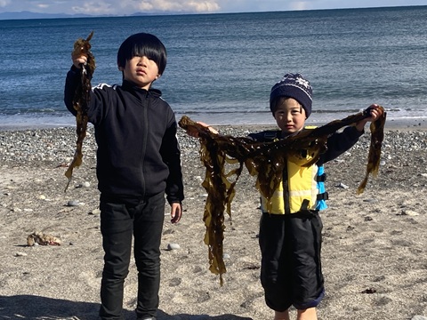 冬に海藻が取れることに驚いていました。取れたての海藻は、あまり美味しくないけれども、自宅に持ち帰り、ワカメのみそ汁を食べた感想では、凄く美味しかったと、言っていました。