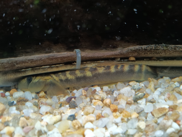 見つけたときは、ヌマチチブだと思っていましたが、水槽に入れようと思い手ですくった時、吸盤で手に吸いついてきたのでおかしいと思い、よくみたらボウズハゼでした。