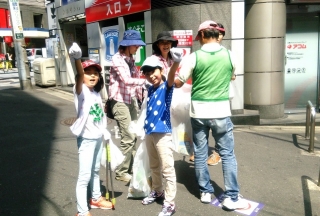 大井町駅周辺の商店街主催の「第6回スポーツGOMI拾い大会in大井」に親子で5チームを編成し、参加しました。45分間の競技時間の中、駅周辺のごみを分別しながら収集し、ごみの重量で勝負を競います。スポーツを楽しみながら、リサイクルを学び、地域の美化に貢献しました。