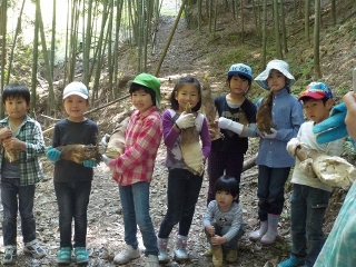 目を凝らして 土の盛り上がりを探します。その下においしい筍が埋まっていることを習いました。 見つけた後も 筍を傷つけずに掘り起こすことの時間がかかりました。でも大物をGETして 疲れは吹っ飛びました。