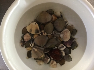 砂抜き時に、ハマグリが潮を吹く様子をじっくりと観察してました。