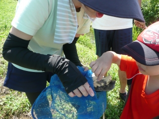 自然教室の後川で生き物調査。