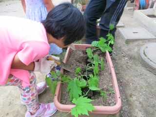 ゴーヤの苗を植えよう!花の札を作ろう!