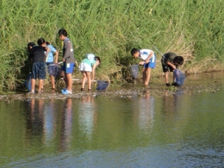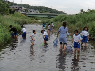 玉一アクアリウム(兵庫県) 染河内川で調査と川遊びの2つのグループにわかれて活動をしまし...