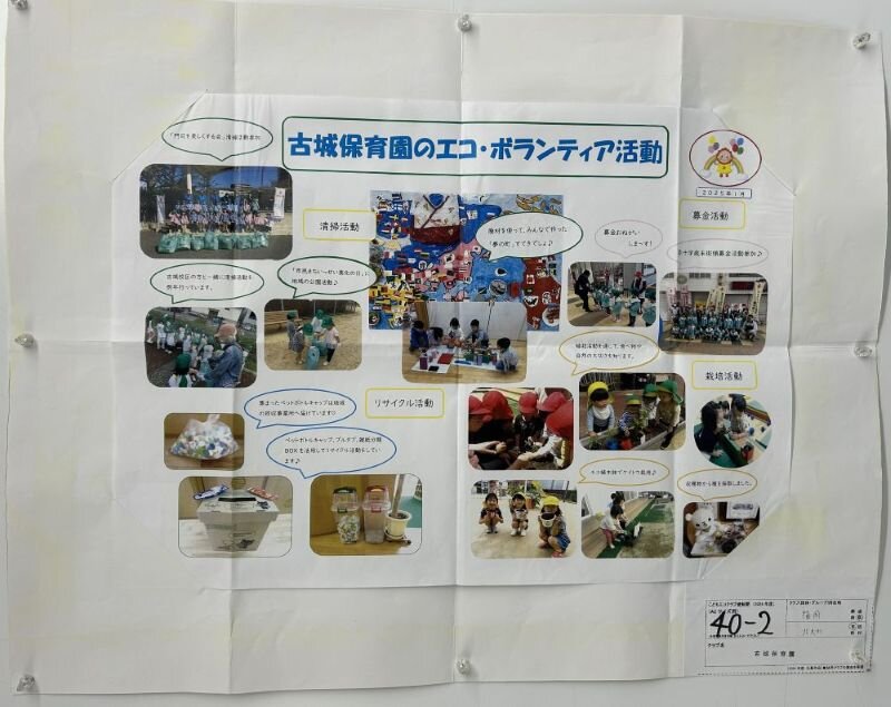 保育園で掲示用に作成した活動をまとめたポスターを、模造紙に貼って応募することも可能です!せっかく作ったポスター、ぜひ全国エコ活コンクールに応募してみてください。幼稚園や保育園のクラブはエコまるとスタッフがお祝いにかけつけます。昨年度の授賞式の様子はこちら