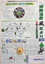 みんなの作ったエコクラブ新聞「釧路湿原 風だより2014」を見てびっくりしました。誌面を3つに分けて、「身近な自然と2014活動報告」「釧路湿原に住む絶滅危惧の心配がある動植物の紹介」「自然災害から身を守る注意」をテーマに取り上げています。