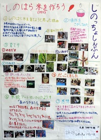 「しのちょしんぶん」の作ってくれて、ありがとう!!! 最初の「しのはら米」を育てる理由、お米の「めだし」から「だっこく」までの「お米作り体験」、そして最後の「感想」まで、壁新聞の読者のみなさんに全体の流れがとてもよくわかるすばらしい「しのっちょしんぶん」です!!!特に、①エコ活動で森のなかまを増やしたい②お米作りはたくさんの時間がかかる③お米を大切にする気持ちをみんなに伝える④ごはんを残さず食べることもエコという四つのそれぞれの感想文に感動しました!!!日本人の主食であるお米作りをしている農家のひとたちの苦労を皆さん自身が「しのはら米」作り体験をすることにより、十分に理解してくれましたね。お米作りの体験学習をしてのこの「きづき」はとても大切なことですね。また、お米作り体験で、みなさんのお米を守るためのがい虫や台風たいさくも、おつかれさまでした。次回の「しのっちょしんぶん」をわくわくして楽しみにして待っていますよ!!!