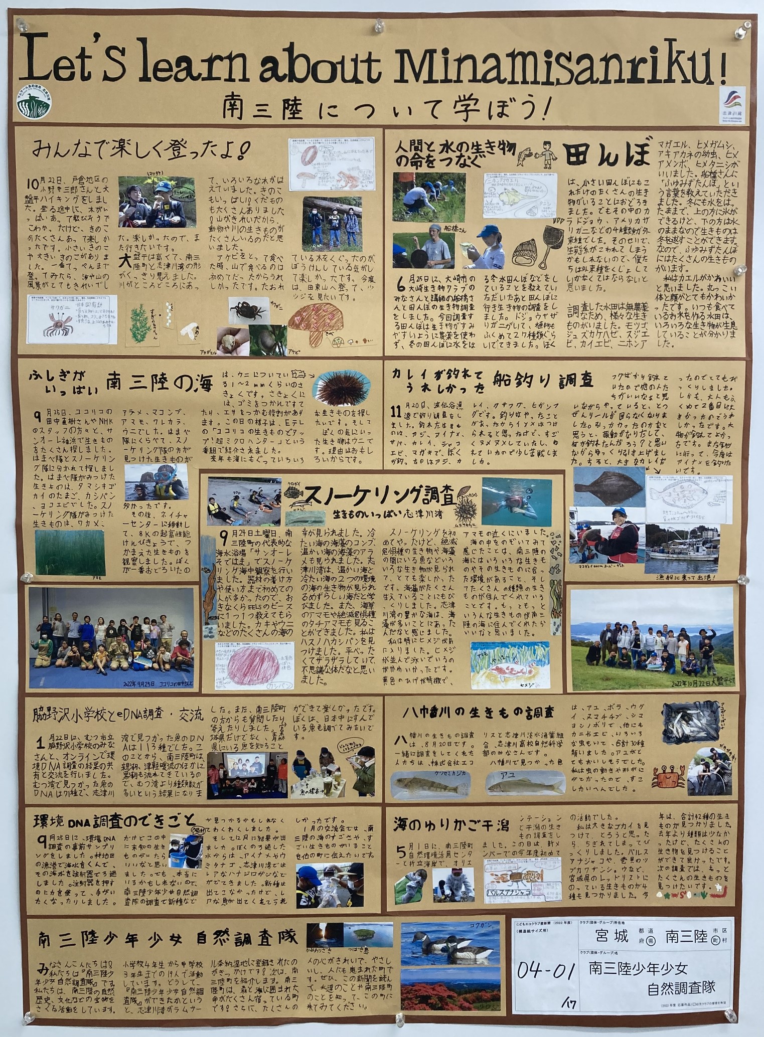 今回の壁新聞は、大変見やすく整理されており、南三陸少年少女自然調査隊が山里川海の広いフィールドで自然観察をしていることが一見して分かる新聞です。そして、それぞれの活動について一つずつコラムを読んでいくと、その時の活動のわくわく感が写真や文字で目に浮かぶ記事になっています。