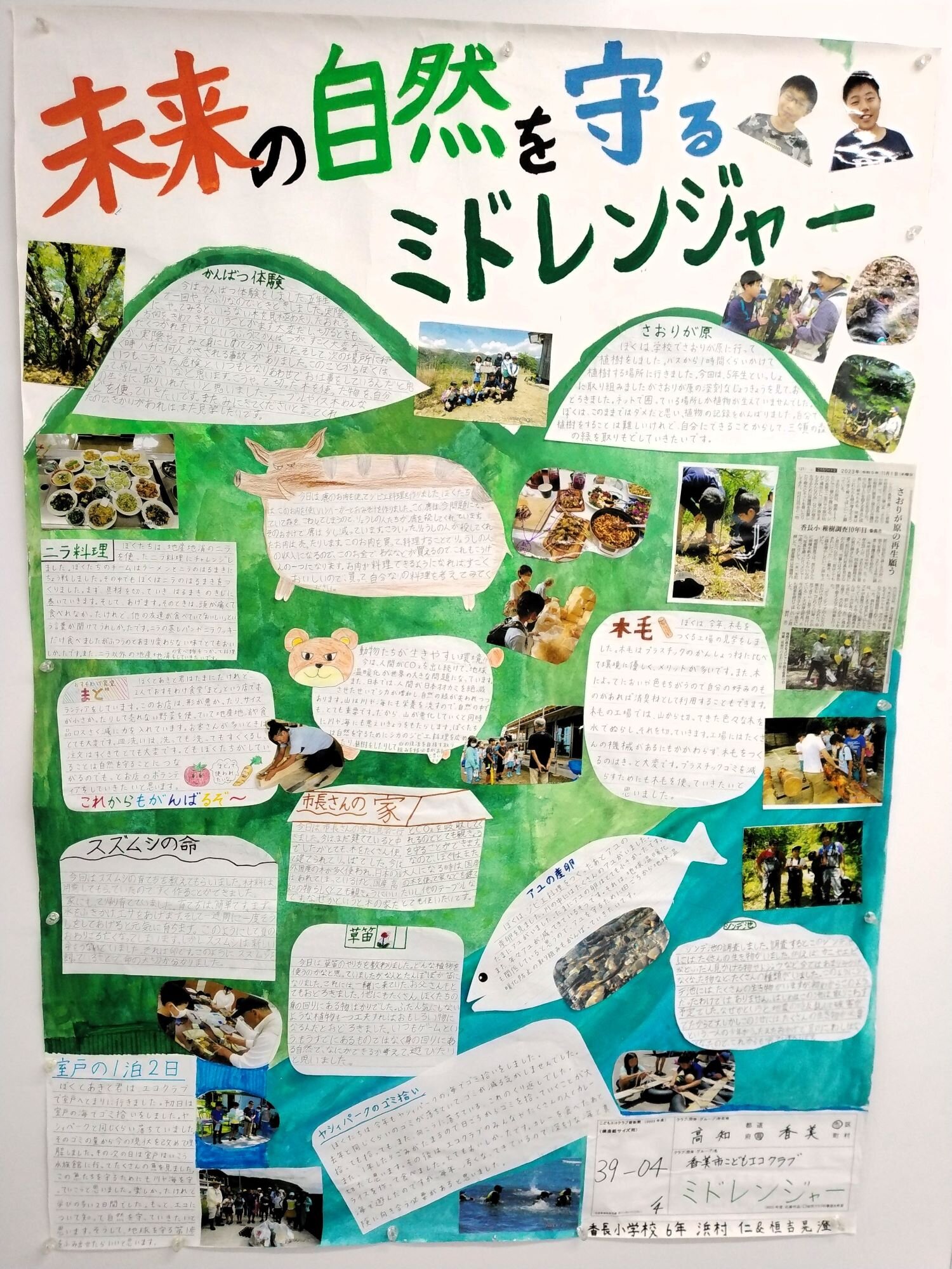 1年間の活動を順に分かりやすく、まとめてくれました。みんなで協力した活動のなかで、いろんな発見があったようですね。 大好きな生きものとつながっている環境を守るため、 これからもいろいろな活動にチャレンジしてください。応援しています!