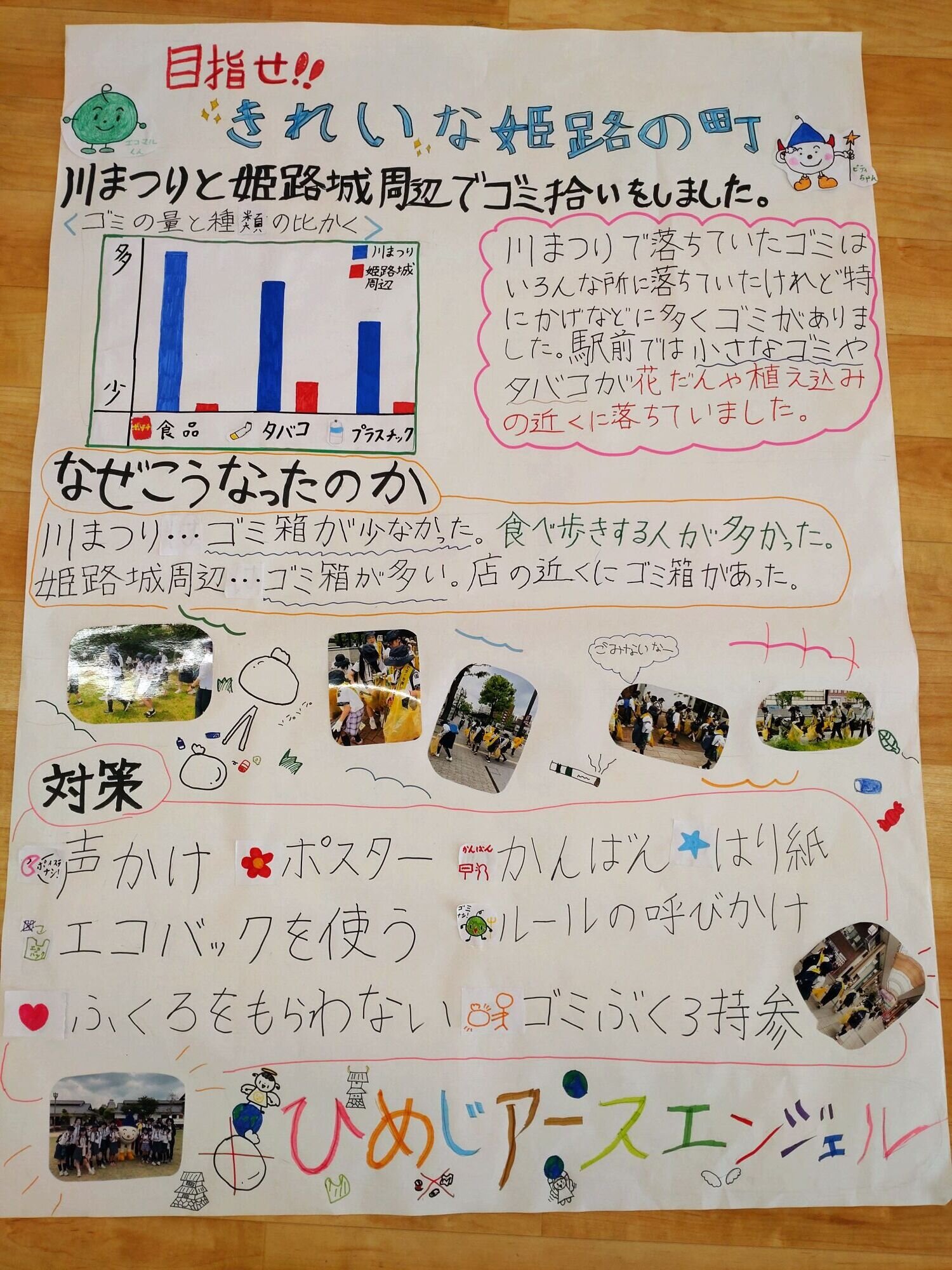 2か所でのごみ拾いについて、ごみの状況や内容、対策など、ごみ関連全般についていろいろとまとめてくれています。ごみの状況やみなさんがどのようなことを感じたのかなどがよくわかりました。