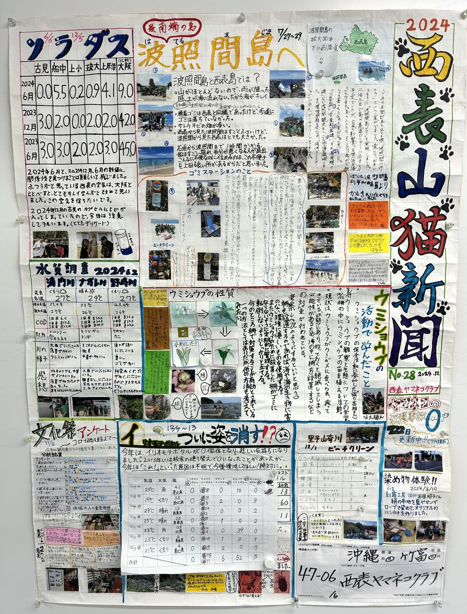 西表ヤマネコクラブのみなさんは、ずっと続けている「ソラダス」や「水質調査」、ホタルの個体数調査、ビーチクリーンなどと、ウミショウブの保全、そして波照間島の見学と、たくさんの活動をまとめてくれました。楽しい情報が新聞からあふれ出てくるようです!
