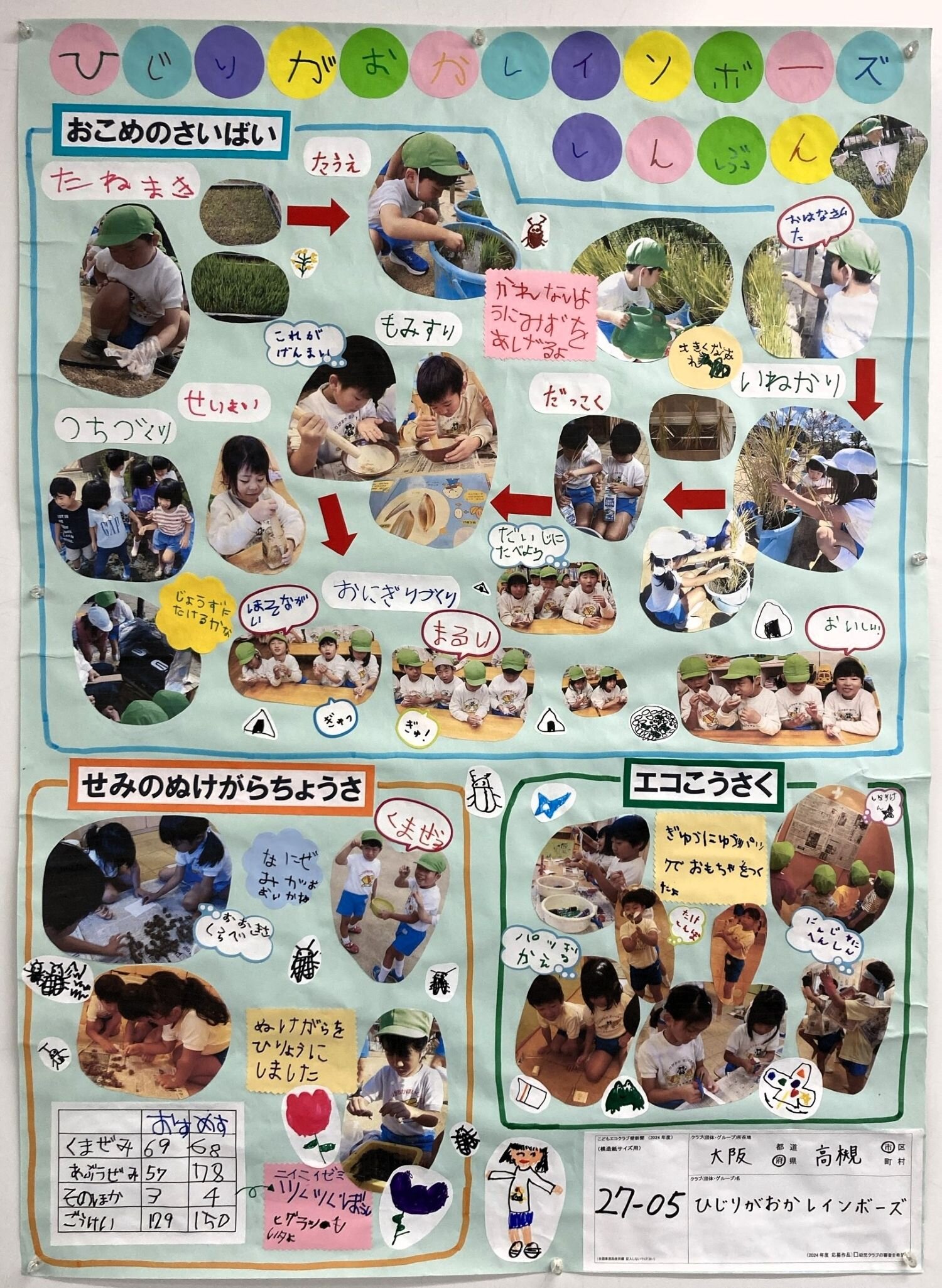 みんながいつも食べているお米がどのようにできるのか学べてよかったですね。 たくさんのセミの抜け殻からせみの種類やおすめすも見分けられたのがすごい です!いつもならごみになる牛乳パックでおもちゃをつくってリサイクルを学 べてよかったです。 これからも頑張ってください。