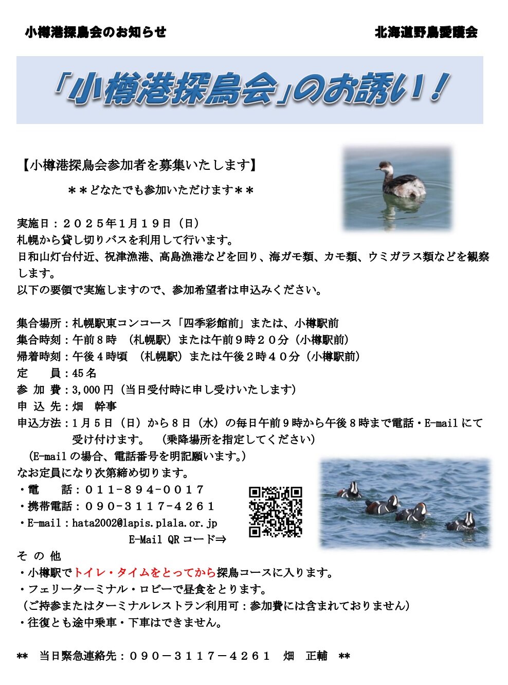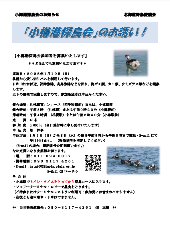 ▸ 小樽駅でトイレタイムを取ってから探鳥コースに入ります。