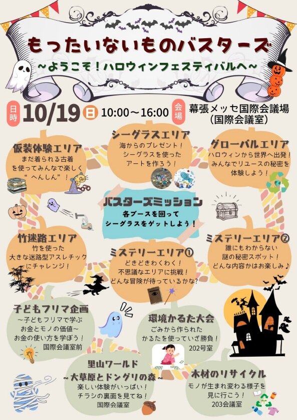 ・もったいないものバスターズ!様々なハロウィンブースを回りながら、バスターズミッションをクリアして、リユースの秘密を探検しよう!
