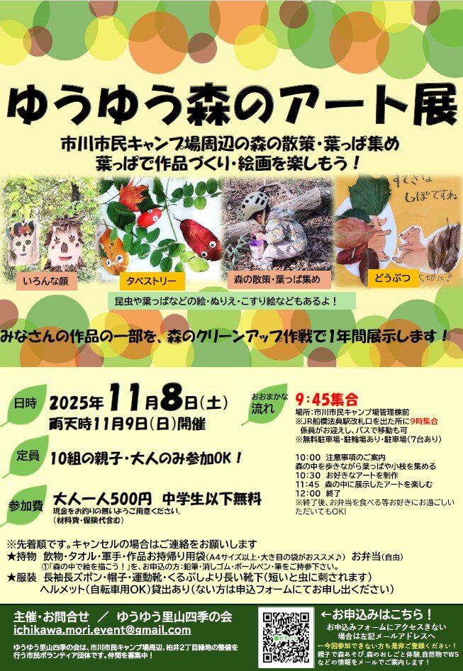 持物:飲物・タオル・軍手・作品お持帰り用袋(A4サイズ以上)