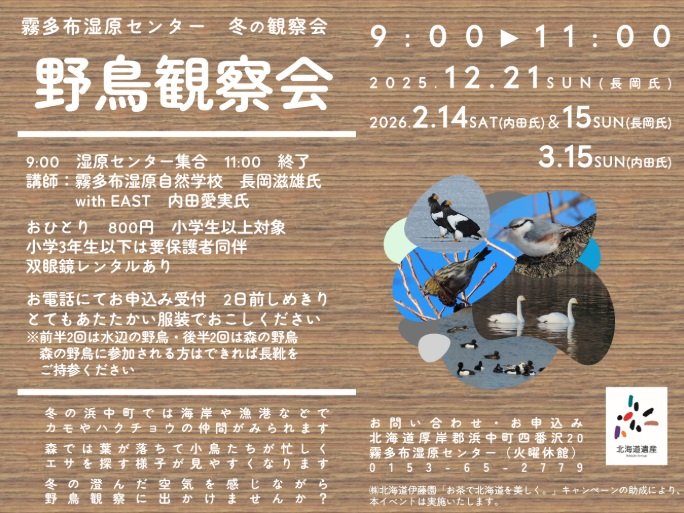 ※前半2回は水辺の野鳥、後半2回は森の野鳥