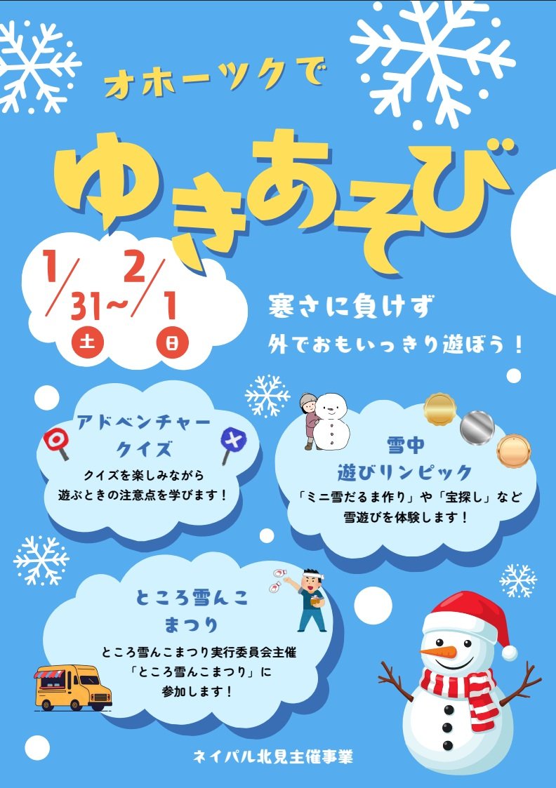 ところ雪んこまつり実行委員会主催の「ところ雪んこまつり」に参加します!(現地にて自由解散)