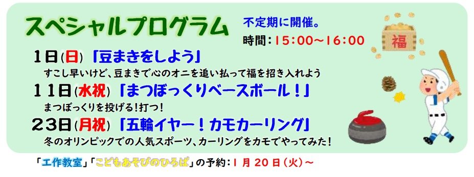 2026年2月 1日(日)〜2026年2月23日(月) 2日(日)・11日(祝日)の15:00~16:00